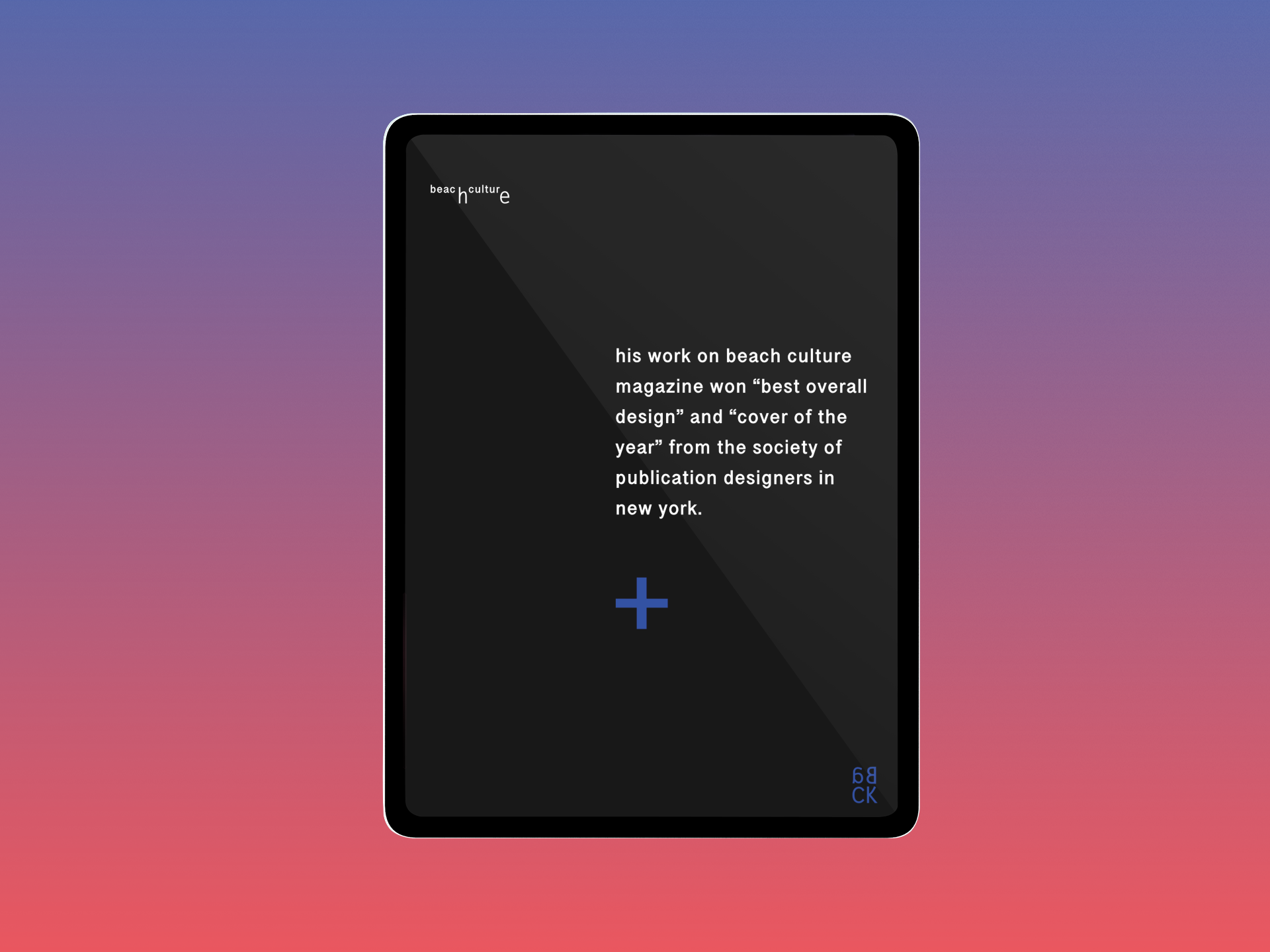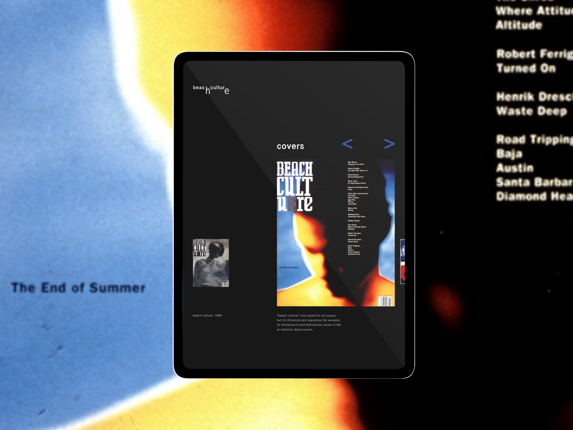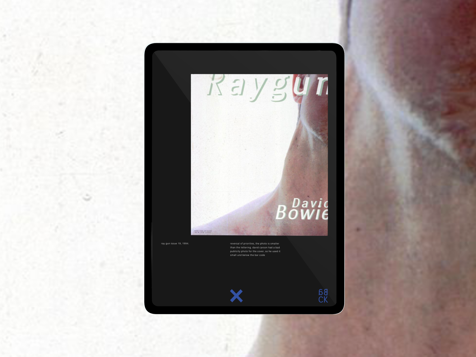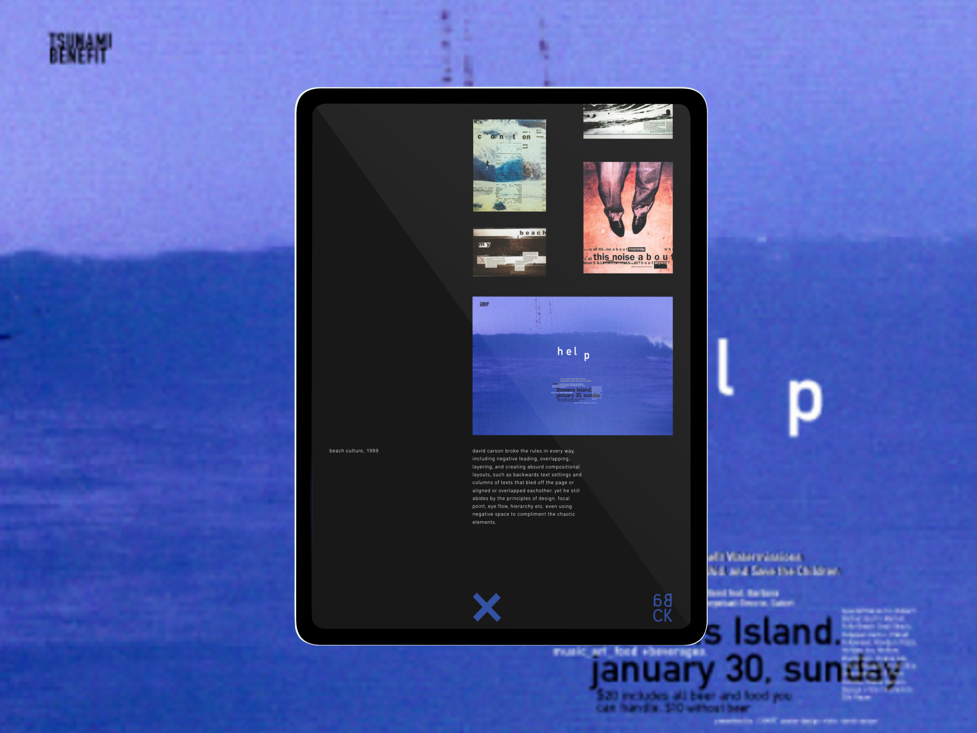 The e-publication aims to show the uniqueness and diversity of David Carson. Bringing disparate content together in a layout that has a common thread while also "breaking the rules" is a big challenge.